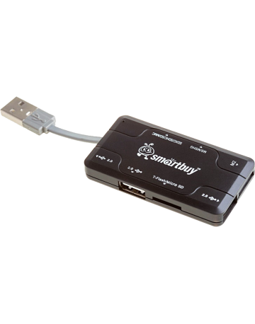 SmartBuy SBRH-750 - это устройство для чтения и записи данных на поддерживаемые карты памяти. Гаджет дает возможность быстро переносить в память компьютера или записывать на карточку такие объемные данные, как фотографии, музыкальные записи, видеоролики. SmartBuy SBRH-750 подключается к USB-порту и совместно с картой памяти может использоваться как внешнее хранилище. Кроме того, он имеет 3 USB-порта, которые позволяют подключать дополнительные устройства.